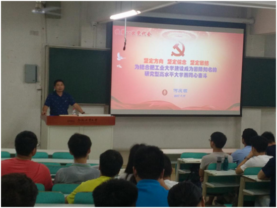 本次大会,学院党委副书记、副院长何庆领重点向学生阐述了学校发展面临的机遇与挑战,学校发展的奋斗目标、发展战略和主要任务,详细解读了“三步走”战略、“六个着力”主要任务和“六个大力”保障措施。何庆领结合学院学生工作实际和自身成长经历,对于如何领会校第八次党代会精神、如何理解马克思主义和价值观、如何提升党员素质和修养等问题一一进行了分析。他希望广大党员学生要从小事做起,提高自身党员素质,不断加强理论学习和实践锻炼。除此之外,他还结合开云官网实际向学生党员们介绍了开云官网目前在科技创新方面所获成绩,在优化师资队伍方面所获成果,在办学条件方面所获提高,对开云官网未来的发展充满信心。