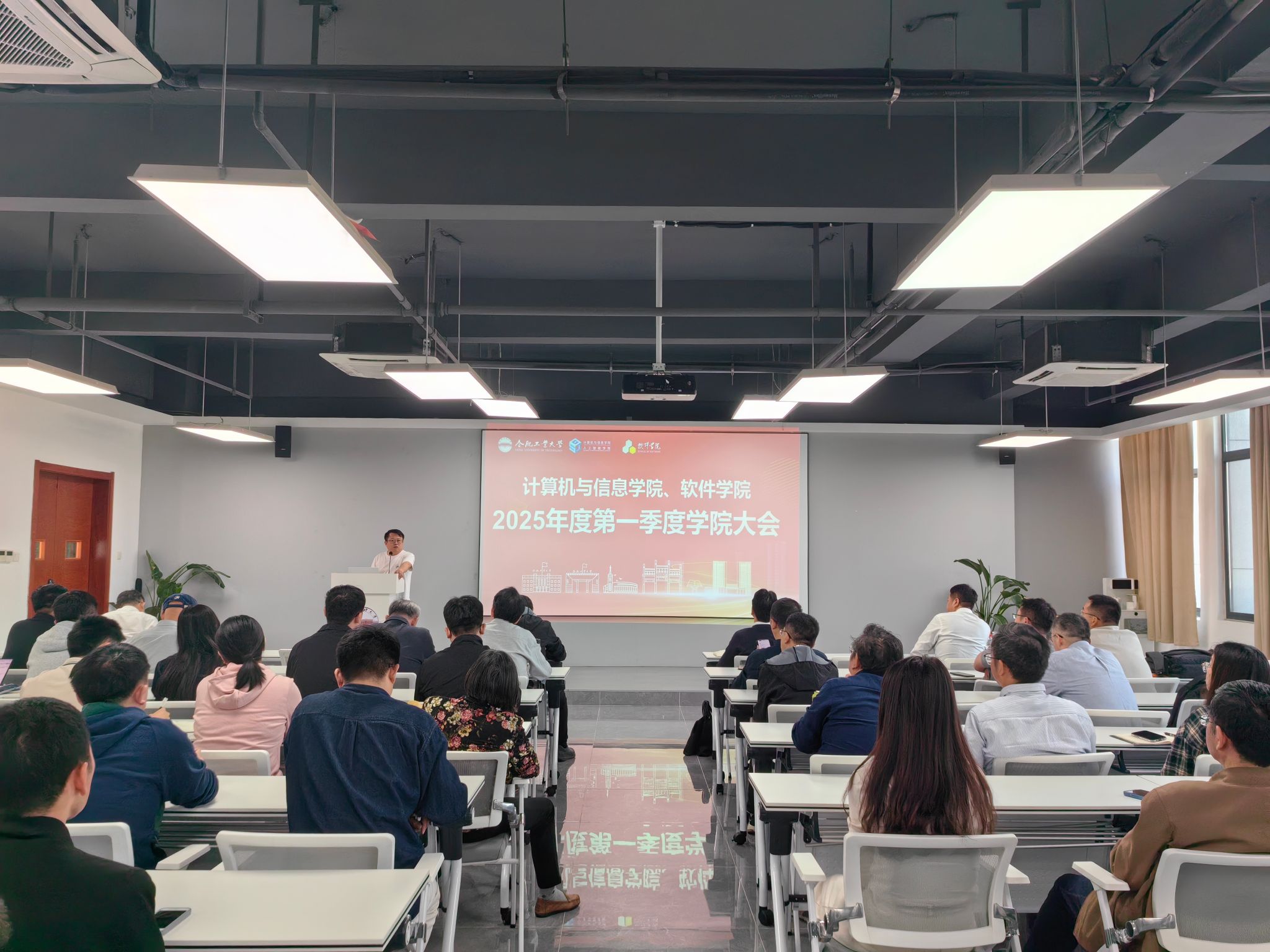 3月26日下午,学院在科教楼B501报告厅召开第一季度全体教职工大会。院领导班子成员及全体教职工参加会议。
