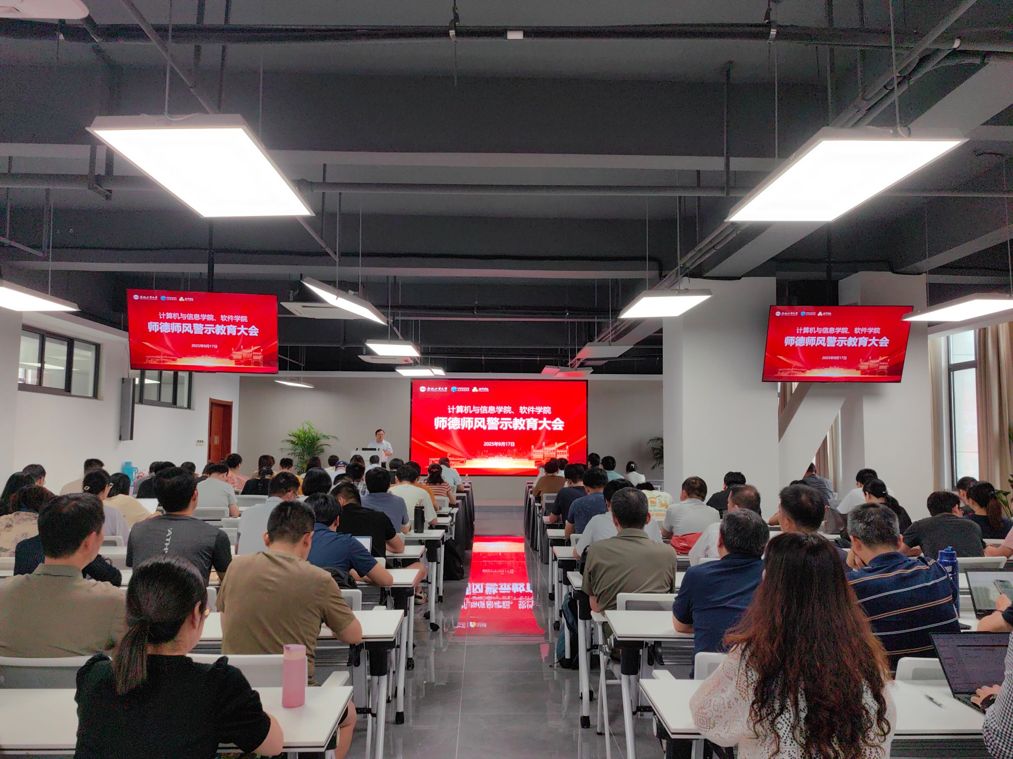 9月17日下午,学院在科教楼B501报告厅召开第三季度全体教职工大会。院领导班子成员及全体教职工参加会议。