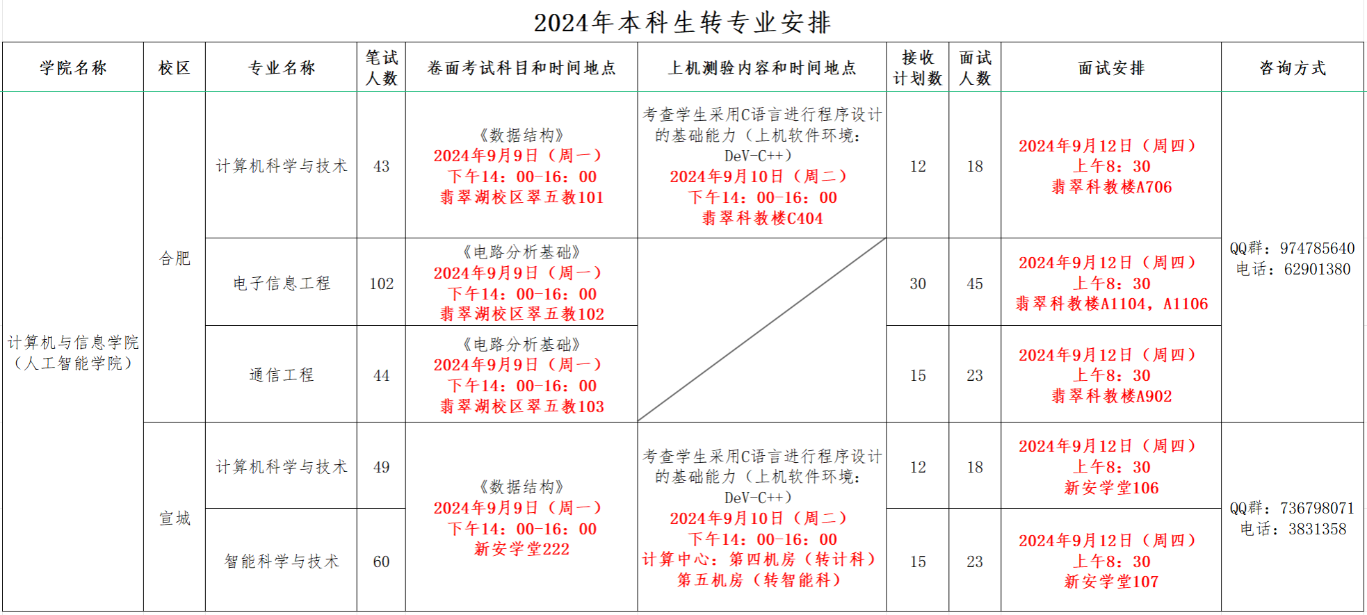 1、计算机科学与技术(合肥和宣城)、智能科学与技术: