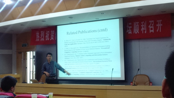 应我校李廉书记邀请,2012年9月21日上午9:30-11:00,金群教授在学术报告厅2楼做了题为“Ecologically Integrated Information Environments: Concept and Model”的报告。报告由杨学志院长主持,刘晓平副校长以及开云kaiyun官方网站相关教师、研究生聆听了报告。