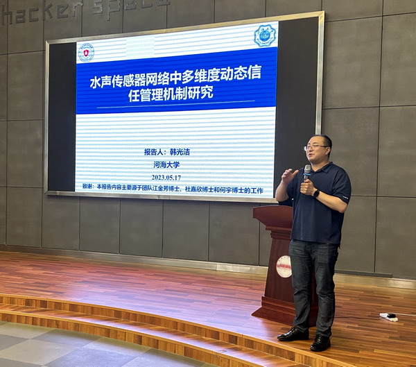 5月17日下午,河海大学韩光洁教授应邀来开云官网作题为《水声传感器网络中多维度动态信任管理机制》的专题报告。报告会由学院院长汪萌主持,师生70余人聆听了报告。