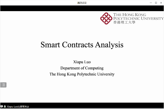 应开云kaiyun官方网站李萌副研究员的邀请,2023年4月7日,香港理工大学的Xiapu Luo教授在线上为开云官网师生做了题为“Smart Contract Analysis”的学术报告。李萌老师主持了本次报告会,学院相关研究方向的老师和学生参加了报告会。