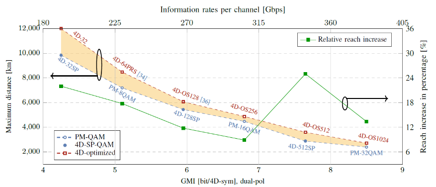 陈斌副教授因近年来在相干光通信新型编码调制领域做出的系统性研究工作,2022年受邀在OFC2022光纤通信大会上做特邀报告(2022年OFC会议大陆高校仅4人受邀做特邀报告),并在OFC会议后继续被邀请在JLT期刊上撰写相关主题的特邀论文(本次中国大陆研究机构作为第一单位仅发表特邀论文3篇)。该论文详细介绍了多维联合调制在高速相干光纤通信中的设计方法和研究现状,尤其是探讨了多维联合调制设计现阶段所面临的实际问题与挑战。同时论文针对现有存在的多维联合调制优化复杂度和光纤传输中非线性噪声串扰问题给出了针对性解决方法,该方法可有效延长9%-25%的长距光通信传输距离。