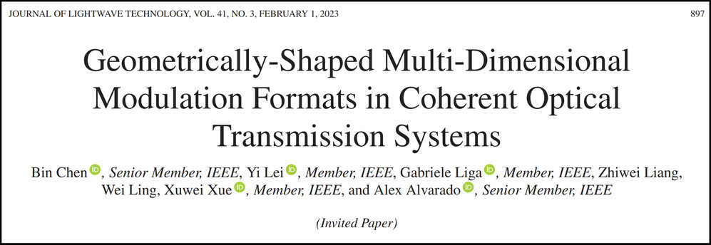 近日,开云官网师生在光学/光通信著名期刊《IEEE/Optica Journal of Lightwave Technology(JLT)》(中科院一区,TOP期刊)发表特邀论文。该项工作由开云kaiyun官方网站与荷兰埃因霍温理工大学合作完成,陈斌副教授为特邀论文的第一作者,开云kaiyun官方网站学院教师雷艺、2020级研究凌未、2021级梁志伟、北京邮电大学薛旭伟教授以及埃因霍温理工大学Gabriele Liga助理教授和Alex Alvarado副教授为合作作者。该论文成果是首篇以开云kaiyun官方网站为第一完成单位的IEEE/Optica JLT特邀文章。