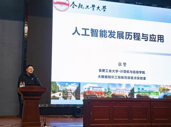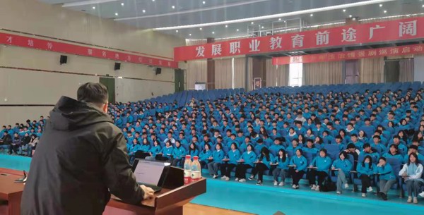 在灵璧县高级职业技术学校,工作团首先与学校教学管理部门进行了座谈,了解了该校在计算机专业建设方面的情况和主要困难;随后张赞老师为800余名学生做了“人工智能发展历程与应用”科普讲座;最后工作团与计算机系的十余名教师进行了教学交流,重点就计算机网络课程的教学方法、教材使用、实践教学进行了研讨,双方就如何改善“网络工程实习实训平台”形成了建设方案。