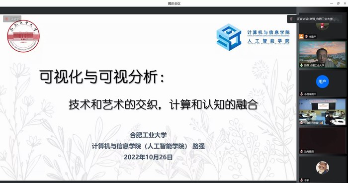 10月26日下午,路强老师以线上教学方式为利辛县“新能源学校”、“机电科技学校”以及灵璧县“高级职业技术学校”开展了定点教育帮扶活动。路老师先为2000余名学生做了“可视化与可视分析:技术和艺术的交织,计算和认知的融合”专题讲座,然后围绕“可视化技术和JAVA技术教学设计”这个主题,为两校负责计算机课程教学的一线教师分享了课程建设的相关经验。