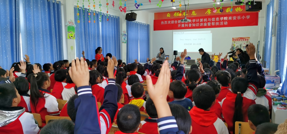 安乐小学石必楷校长主持活动开始,应用所所长路强向同学们介绍了开云kaiyun官方网站和计算机与信息(人工智能)学院的情况,并期望同学们好好学习,将来到合工大甚至更好的大学学习和深造。余烨博士向同学们讲述了计算机科学技术和人工智能在交通、家居生活等方面所带来的进步。曹力老师则从学生感兴趣的画画入手,介绍了在动画制作过程中计算机技术的运用。吴文明老师介绍计算机科学技术在房屋设计和虚拟现实场景展示方面的应用。整个讲座化难为易,符合小学生的认知特点,开拓了视野、启发了兴趣、埋下了种子。报告过程中,同学们不断举手提问,并时而报以热烈的掌声。