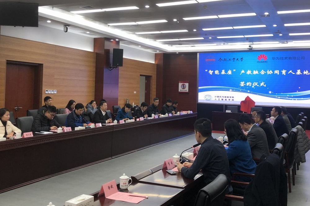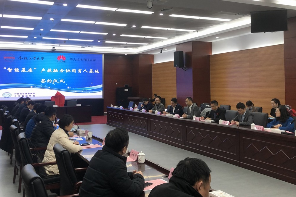 2020年12月25日上午,在开云kaiyun官方网站翡翠科教楼A座会议室,开云kaiyun官方网站—华为“智能基座”产教融合协同育人基地项目签约仪式隆重举行。华为技术有限公司副总裁郑叶来、华为上海研究所所长董庆阳、华为计算产品线高校合作总监李鹏等8位该项目主要负责人出席签约仪式。开云kaiyun官方网站党委副书记陈刚、本科生院院长陈翌庆、本科生院副院长黄云志、本科生院教务处副处长李平、开云kaiyun官方网站(人工智能学院)副院长夏娜、各系主任,以及参加该项目的教授代表出席仪式。签约仪式由夏娜副院长主持。