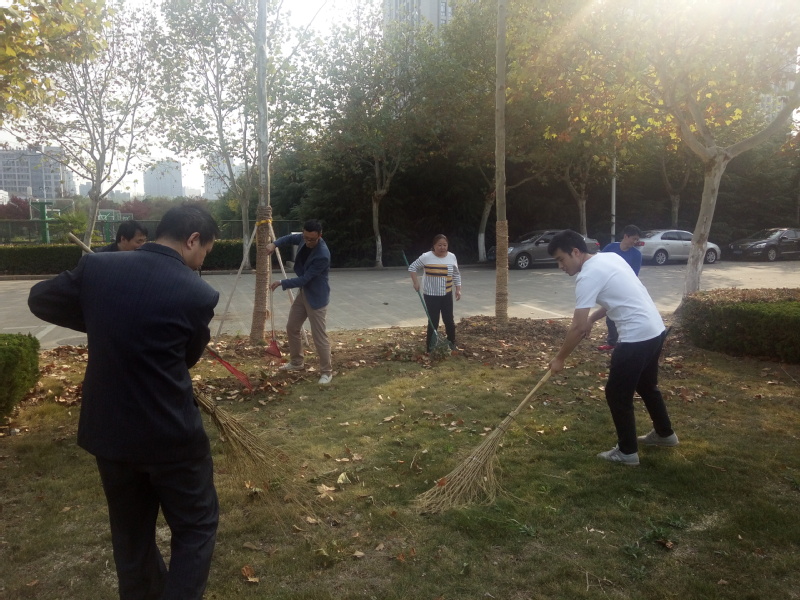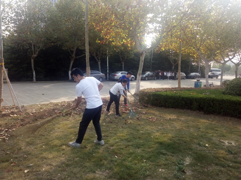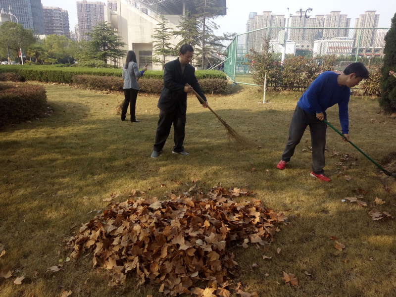 在运动场旁边的草地上,积压了大量的树叶,影响了该区域的美观和卫生。大家利用扫帚、钉耙等工具对树上落下的大量树叶进行了清扫工作,将其聚集到一起,然后和相关部门同事将树叶运走。
