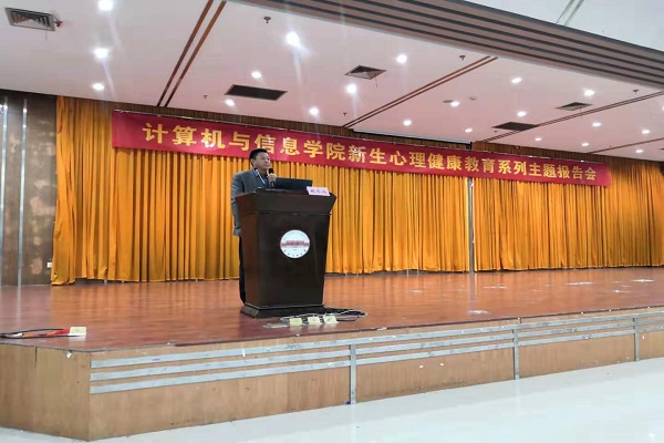 为增强同学们心理健康认识,帮助尽快适应大学生生活,10月15日晚,开云官网于翡翠湖校区图书馆报告厅开展“珍爱生命,做主青春“新生适应性心理讲座。讲座主讲人为安徽审计学院胡华北教授,学院相关辅导员及全体2019级新生出席。