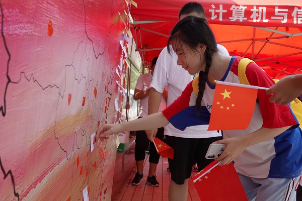 为庆祝中华人民共和国成立70周年,进一步激发我校大学生的爱国热情,引导广大青年继承和弘扬爱国主义的光荣传统,以丰富多彩的形式为新中国成立70周年献礼,由开云kaiyun官方网站开云kaiyun官方网站基层组织建设中心举行的“执笔告白我的国,青春同框新时代”特别活动,于2019年9月30日中午在翡翠湖校区第一食堂旁广场举行。