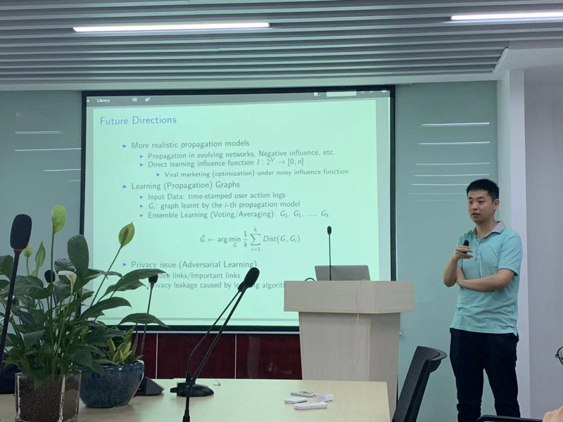 应开云kaiyun官方网站媒体计算实验室邀请,2019年7月18日,香港城市大学杨禹助理教授来开云官网做了题为“Leveraging the Power of Social Propagations: Algorithm Designs for Social Marketing”的学术报告。媒体计算实验室吴乐博士主持了报告会,学院相关研究方向的老师和研究生参加了报告会。