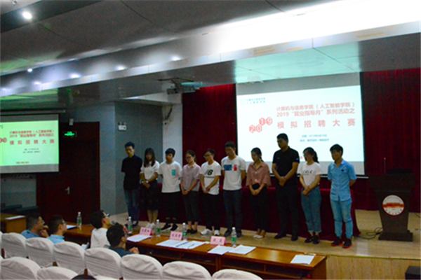 6月19日下午,计算机信息学院在建艺馆负一楼报告厅举办2019年模拟招聘大赛。活动邀请了中国银行软件中心人力资源部部长马晨阳,海康威视合肥技术面负责人刘玉奇,北京思特奇安徽分公司技术面试官王强,前程无忧面试官赵宇担任本次模拟招聘的模拟面试官,院团委相关负责老师、前程无忧校园部经理王恒帅出席了本次活动。