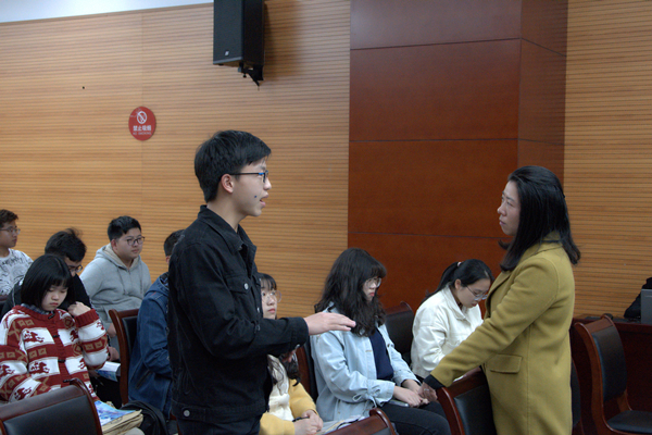 上午,培训邀请了中国科学技术大学宋怡老师为学员们集中授课,主题为“班级中学生骨干的服务与领导”。授课过程中宋老师运用课堂讲授、小组活动、团体训练等方法,对参训学员在班级工作中所面临的问题进行互动探讨。