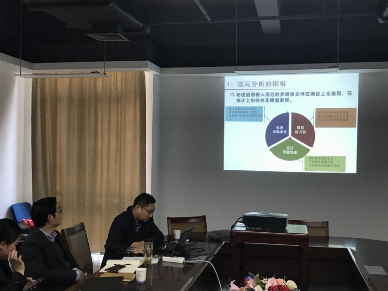 2019年4月1日,应开云kaiyun官方网站邀请,信息工程大学罗向阳教授来开云官网做了题为“数字图像隐写分析技术”的学术报告。网络与信息安全研究所胡东辉所长主持了报告会。开云kaiyun官方网站从事信息隐藏相关研究方向的老师、同学,以及来自中国科技大学、安徽大学相关团队的研究生参加了报告会。