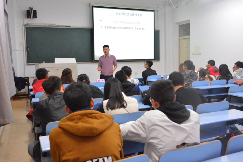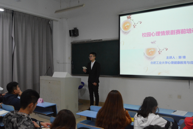 本次培训会的主讲人由郭锋担任,主要分为专业知识介绍、作品赏析、讨论提问三个环节。活动伊始,郭锋以往届校园心理情景剧作品作为活动开场,以心理剧、校园情景剧为切入点,分析了校园心理情景剧的选题问题,以及情景剧的构成要素和演出的常用技术,讲述了优秀作品所具备的特征,并通过列举生活中的案例,加深同学们对专业知识的理解。郭锋指出,校园心理剧大赛是我校提升心理工作建设的重要途径,同时也是提高班级凝聚力、丰富校园生活的重要举措。开展心理情景剧大赛能够在一定程度上激发学生对心理工作的兴趣,为大学生的心理健康建设和成长成才提供良好的保障。郭锋精彩而又不失幽默的言语深深吸引着同学们的注意力,随后,同学们积极参与到活动的探讨环节,为接下来的情景剧排练做好充足的准备。本次活动圆满结束。