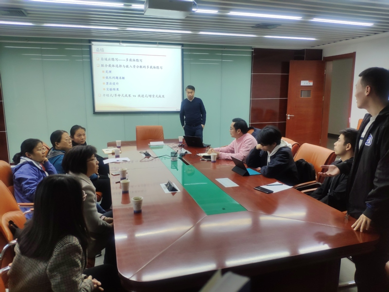 张新鹏教授首先简要回顾了数字隐写的背景和原理,重点介绍了自适应隐写和STC编码,提出了多载体安全隐写的研究背景和新的问题。重点介绍了他们团队近期在多载体隐写方面的一个工作,该工作通过数学推导和算法设计,巧妙的将载体选择与嵌入量分配一体化完成。最后张教授就这一方向进行了总结和展望。报告会结束后,在座师生就感兴趣的话题和张教授进行了深入交流。