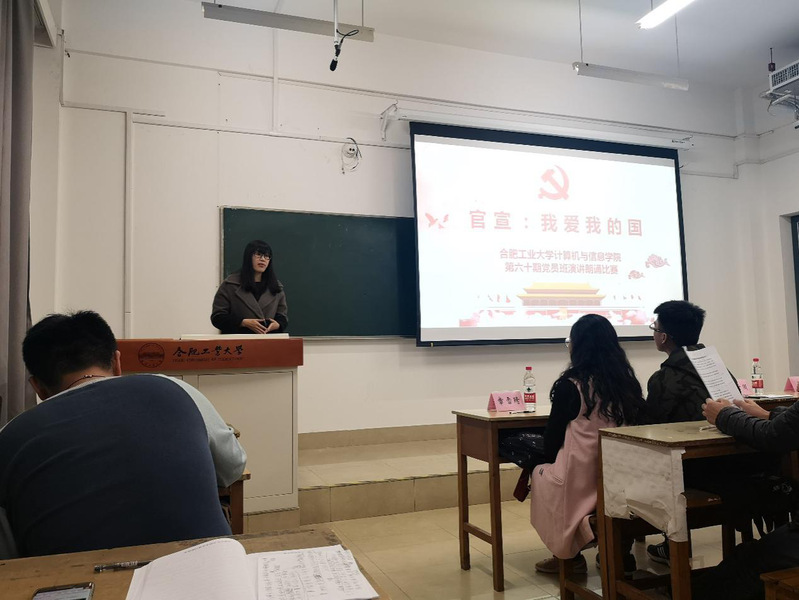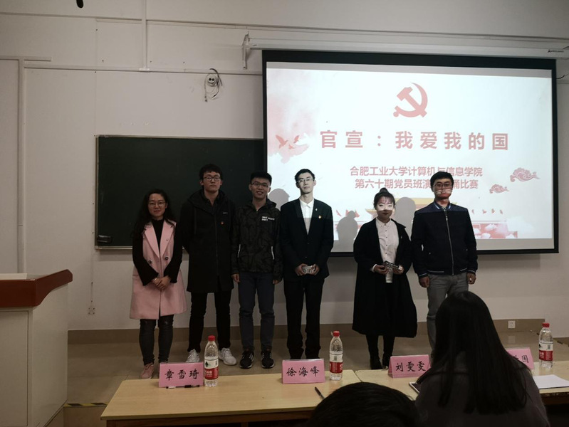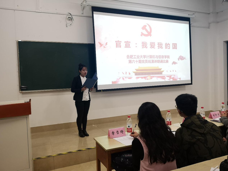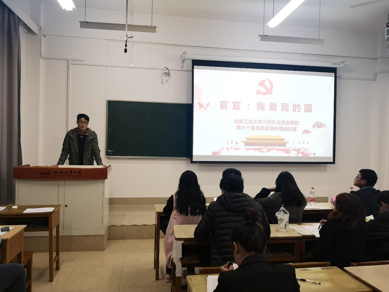 为深入学习贯彻全国教育大会精神,弘扬爱国主义精神,在第60期党员班学员中厚植爱国主义情怀,讴歌改革开放四十年党和国家各项事业所取得的辉煌成就,展现党员风采。开云kaiyun官方网站第60期党员班于2018年11月11日晚七点在翡翠湖校区3教309举办主题为“官宣,我爱我的国”朗诵演讲比赛。学院相关负责老师以及各专业党支部副书记等出席并担任评委,党员班55位成员参加本次活动。