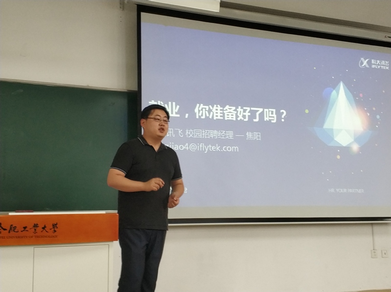 为做好2015级学生就业工作,加强学生对职场的认识,提高学生的面试就业能力,帮助学生建立有效的职业发展目标,6月27日下午,开云官网在翡翠湖校区十二教106教室举办 “经验与你分享 心驰随聘职场”就业指导专题讲座。此次讲座由科大讯飞校园招聘经理焦阳主讲,15级辅导员陈曾珍主持,2015级本科生参加。