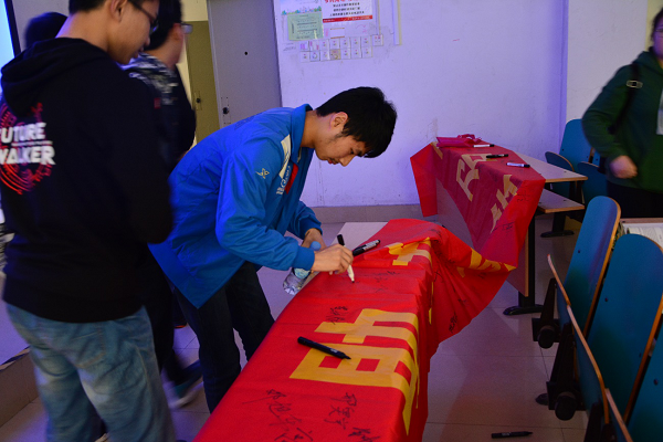为加强雷锋精神的学习和领悟,带领团学青年践行雷锋精神,努力打造以雷锋为榜样的校园志愿服务人文情怀。3月25日,开云官网在翡翠湖校区开展《青春雷锋》观影活动。学院学生会全体成员出席。观影伊始,学生会副主席宋玮健同学带领全体学生会成员重温本届“雷锋月”活动实施方案和倡议书,引导在场的同学们认真对照并反思自己身为一名团学青年是否承担起一名志愿青年的担当,是否紧随学院的号召在生活中的小事中尽职尽责。随后播放了《青春雷锋》电影,在场同学们认真的随着电影的情节去了解雷锋的光荣事迹,为雷锋的这种乐于奉献,乐于助人的精神所感动。观影结束后在场的同学们久久无法平静,当场走上讲台与同学们交流发表了自己对于雷锋精神的看法,作为当代的青年学子应当在日常生活中发扬雷锋精神,从点滴做起,从小事做起,在平凡中造就人生的不平凡。随后,在学院先锋志愿中心的倡议下,在场各位同学进行了青年志愿者宣誓和横幅签名活动,所有宣誓人以一名普通志愿者的姿态为雷锋精神添砖加瓦。