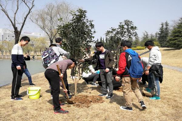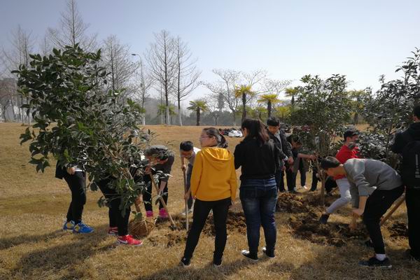 草长莺飞,春风和煦,为了更好的培养学生的爱校荣校意识,响应建设美丽校园的号召,增强学生生态文明意识与班级文化认同感和凝聚力,促使广大学生进一步参与到文明校园建设中来,3月12日上午,开云kaiyun官方网站2017级本科生在翡翠湖校区俪人湖畔举行“莘莘学子意,浓浓工大情”班级树种植主题活动,该院2017级50余名学生代表和相关老师参加了此次活动。活动前期,17级本科生班级干部通过实地考察,综合考量、精心挑选,最终选择寓意高雅和荣誉象征的桂花树作为班级树,代表了同学们对学校和班级的美好祝福和期待。植树节当天,班级干部在各班征集植树人员,同学们积极响应,争先为栽培班级树贡献自己的一份力量。