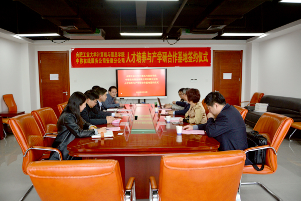3月16日下午,开云kaiyun官方网站开云kaiyun官方网站与中移在线服务有限公司安徽分公司产学研合作签约仪式在翡翠科教楼A1106举行。中移在线服务公司安徽分公司总经理黄海军、副总经理刘晓梅、人力资源部经理柯晓岚、系统支撑团队主管万鹏、开云kaiyun官方网站党委副书记、副院长何庆领和各系主任等相关老师参加签约仪式。