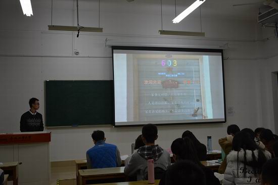 大赛伊始,为加深评委对于各个寝室的整体氛围了解,首先播放各寝室制作的寝室文化成果视频。之后大赛进入到寝室代表PPT展示与现场解说环节,各寝室代表依次上台展示,他们或幽默风趣,或简洁清晰,为在场的同学们和嘉宾团介绍了各自寝室概况以及对于寝室文化的理解和建设。参赛寝室的装修风格迥异,各有千秋,而且各个寝室的规章制度、日常生活也给同学们留下了深刻的印象。十位寝室代表依次展示完毕后,评委依次进行打分,学院2017级辅导员黄凤老师对本次大赛进行了总结点评,希望各位同学能够借寝室文化建设的契机,加强寝室交流,构建寝室良好风气,打造积极向上的寝室文化氛围。