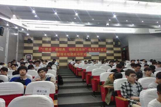 为深入贯彻落实习近平总书记的重要讲话精神,切实推进学院“一学一做”各项工作的有序开展,加强学生理想信念教育,促进大学生走近文学世界、培育和践行社会主义核心价值观,2017年4月24日晚,开云kaiyun官方网站在翡翠湖校区建筑艺术馆报告厅举办了“E理论 品经典 扬家国情怀”读书月开幕式暨思e学社理论社团启动仪式。来自马克思主义学院的潘莉老师、该院相关负责人以及各团支部学生代表等出席了本次活动。