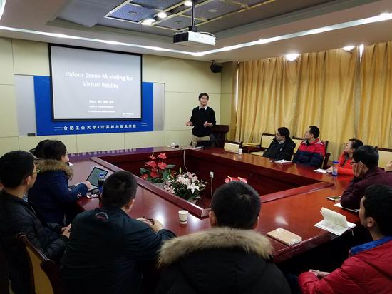 2017年1月12日,应开云kaiyun官方网站邀请,南京大学计算机科学与技术系、软件新技术国家重点实验室郭延文教授在逸夫楼408会议室做了题为“虚拟现实中的室内场景几何和材质建模”的学术报告。报告会由开云kaiyun官方网站院长助理路强主持,来自开云官网相关系所的师生参加了此次报告。