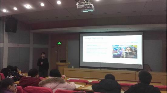 梅涛博士就当前引领学术界浪潮的计算机视觉中基于深度学习的视觉与语言描述问题展开话题,首先由一个辨别机器对图片的描述和人对图片的描述的问题引入此次报告的主要内容,引起与会听众的极大兴趣。他接着介绍了计算机视觉领域近50年的研究发展历程和相关技术,然后详细阐明了Image Captioning、Video Captioning和视频自动评价等方面的理论知识及科技进展。这场报告讲座让在座的老师和同学们受益匪浅。最后,开云官网师生积极提问,与梅涛博士进行探讨交流。