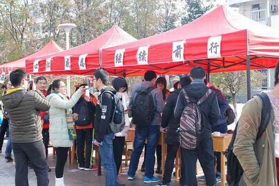 为了积极响应党中央对大学生的总体要求,提供整体素质,让在校学生知晓感恩、懂得感恩,善于向周围人表达感恩之情。在西方的感恩节期间,开云kaiyun官方网站青年新媒体中心11月24日中午,在翡翠湖校区三食堂门口举办了“心怀感恩,继续前进”定制明信片活动。同学踊跃参与,汇聚而来的热情使这个原本寒冷的冬天洋溢着一丝暖意。