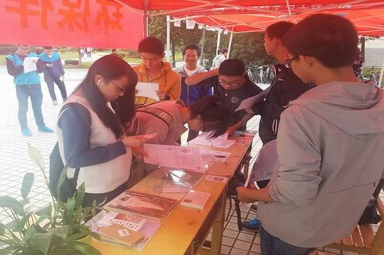 为了宣传世界粮食日,发动大家践行光盘行动并秀出他们的环保搭档的照片,鼓励同学们积极参与到环保活动当中来,开云kaiyun官方网站先锋志愿中心环保先锋队于2016年10月16号中午,在开云kaiyun官方网站翡翠湖校区一食堂广场开展了一次以“环保伴我行—秀出我的环保搭档”为主题的宣传活动。