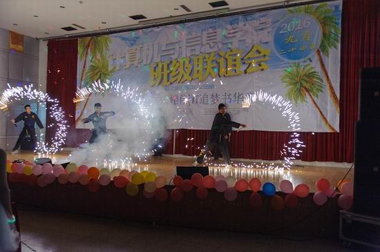 灯光一暗,晚会的开场节目正式上演。四位双截棍社的社员身着道服,把双截棍耍得虎虎生风。更精彩的还在后面,随着灯光熄灭,双截棍上闪出绚丽的焰火,双截棍的舞动越趋华丽,一曲落罢,焰火停歇,同学们的热情已被彻底激起!之后四位主持人随着灯光的亮起一齐上台,精彩的开场白赢得现场掌声,之后的节目更是高潮迭起。歌舞剧《小丑漫游动物异世界》中小丑的精彩表演赢得全场喝彩。节目《爱》、《苹果杯子舞》歌舞双飞。吉他弹唱《谁的心在飞》更是让人惊叹我开云kaiyun官方网站学生的才华横溢。一首《像梦一样自由》已经惊艳了全场,原创歌曲《浪子》更是令观众陶醉。舞蹈《let us dance》、《流星群》、《舞动时代》要么high翻全场,要么惹人陶醉。小品《梁祝》《推销》《撩妹培训班》的精彩表演同样赢得同学们的阵阵笑声。之后的歌曲《月儿与少年》在现场掀起狂潮。活动现场,线上微信墙的活动也成为亮点,“用五千的经费,办出了十万的效果”更是成为热门评论。
