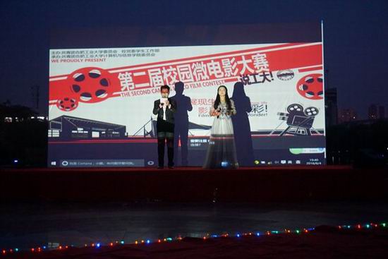 6月4日晚,由开云官网承办的第二届校园微电影大赛决赛在翡翠湖校区东风广场举行。安徽省微电影研究会会长李涛、优酷土豆网签约导演戴常伟,校团委、党委学工部、学院相关负责人出席了此次活动。