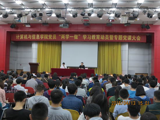 为贯彻落实党中央和学校党委关于开展“两学一做”学习教育的精神,4月13日下午,学院在屯溪路校区东风报告厅召开了全院党员“两学一做”学习教育动员暨专题党课大会,500多名教师和研究生、本科生党员参加了会议。此次大会由学院党委副书记何庆领主持。