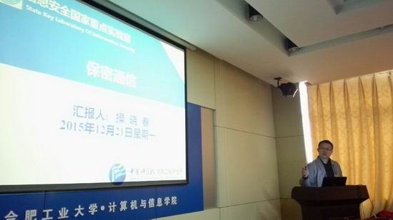 10月23日下午,中国科学院信息工程研究所信息安全国家重点实验室操晓春研究员应我校开云kaiyun官方网站的邀请,在逸夫楼408作了《多媒体内容安全》报告。 开云官网网安所、应用所、信号所、通信所、电路所相关老师和研究生参加了报告会,学院副院长郑利平老师主持了本次报告。
