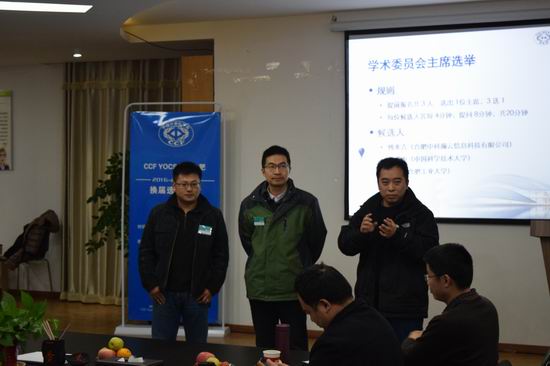 换届活动正式开始。刘晓平首先致辞,对远道而来的嘉宾表示欢迎。他指出合肥是科技城、创新高地,高校和研究所聚集,计算机学科人才辈出、学术活动活跃,勉励大家要不断创新、为国家和地方建设发挥作用。陈拥权随后发言,对本次会议召开表示祝贺,希望YOCSEF合肥越办越好,他将会一如既往的支持YOCSEF合肥的各项活动。韩银和进行了YOCSEF培训,引导大家再次学习YOCSEF历史和精神等,并进行了考试。之后,YOCSEF合肥现任主席郑利平进行了年度工作报告,对开展的各项活动、特别是CCF CNCC 2015期间活动进行了总结,并对委员参与活动的情况予以通报。