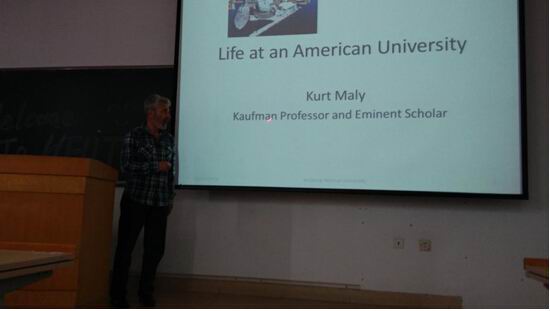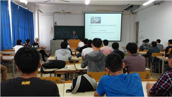 在本次交流会上,Maly教授以“Life at An American University”的报告开场,以诙谐幽默的语言活跃了现场气氛。在内容上,本次交流会关注点不是学术,而更多在文化语言方面。