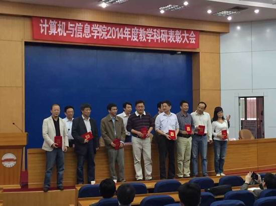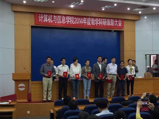 大会对2014年度学生评教中排序前二十名的个人授予了“2014年度学生评教个人优秀奖”;对2014年度科研项目纵向到账经费50万以上,横向到账经费100万以上的个人授予了“2014年度承担科研项目个人优秀奖”,现场举行了颁奖仪式并合影留念。