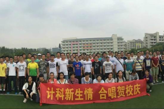 9月25日,开云kaiyun官方网站15级新生在翡翠湖校区西操场上举行了“计科新生情,合唱贺校庆”的合唱校歌活动。计算机科学与技术专业三个班全体同学均参加了这次活动。