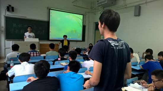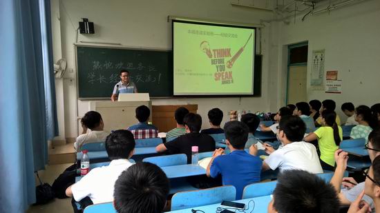 参加经验交流会的11级学长有:徐冲冲、孟庆彬、刘磊、金强。徐冲冲,几乎包揽所有的奖学金,是学霸的代表,已保研至中国科学技术大学;孟庆彬,实力派国防生代表,保研至国防科技大学;刘磊,编程达人的代表,拿offer拿到手软,未来工作地点:腾讯;金强,考研实力派代表,在计算机学院继续攻读研究生。