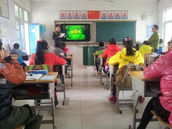 接着,课堂教学开始。志愿者们从起源、发展、以及各国的植树节日期等方面介绍了植树节,并配上生动的视频和图片,带领小学生们从不一样的角度看植树节。“老师”逗趣提问,学生机智应答,课堂之上,一派其乐融融的景象。下课铃声响起,本次支教活动在欢声笑语中圆满结束。