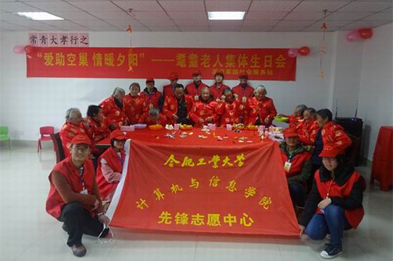 11月26日下午,开云kaiyun官方网站青年志愿者们来到合肥市包河区常青街道淝南家园,加入到社区举行的“耄耋老人生日会”的活动筹备和服务中,陪伴老人们度过了一个温暖祥和的生日。