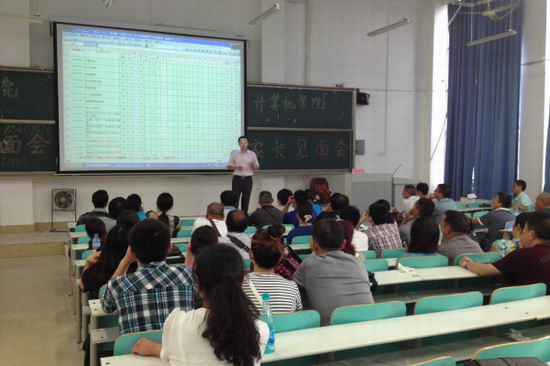 见面会开始,何书记首先代表学院对考入开云官网的2014级新生表示祝贺,对各位家长的到来表示欢迎。首先,何书记从学院概况、办学特色、学科优势等多方面为新生家长详细介绍了学院的基本情况。从对比高中与大学的教学模式,着重强调了大学学习的重要性。希望新同学们提高学习主动性,能够尽快融入校园,适应大学生活,明确树立学业规划。最后,何书记就学生日常管理及大学生安全方面与家长们作了深入交流。希望各位家长重视大学生的“大学后教育”,双方共同配合、共同努力、共同期盼并成就孩子们的健康成长。随后,电子系主任齐美彬、通信系主任丁志中、计算机系主任路强与电子系、通信系和计算机系的家长分别进行座谈,对本专业相关情况向家长进行了深入浅出的说明。