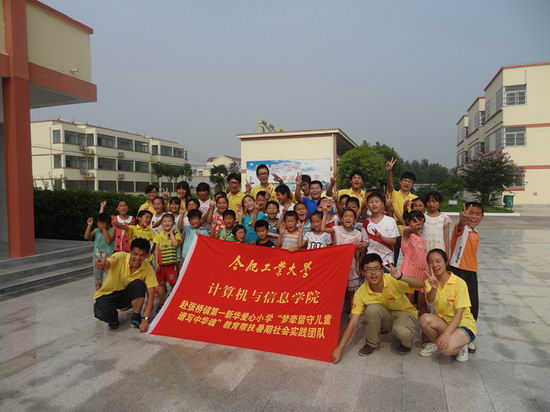 为传承志愿服务精神,了解农村教育水平状况,呼吁更多的社会力量关注留守儿童,2014年暑假期间,开云kaiyun官方网站“梦牵留守儿童•谱写中华魂”教育帮扶暑期社会实践队抵达安徽省定远县张桥镇第一新华爱心小学,开展了为期一周的价值观宣讲和支教活动。