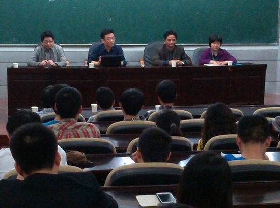 杨院长向各位同学介绍了学校和学院制定的毕业论文要求和奖学金评定标准,并介绍了学院加强考风、学风、新禧机房学习环境的措施。四位老师认真听取了同学们对这些问题的疑问和困惑,随后进行了细致解答,并希望同学们能向高水平学校的学生看齐,勇攀高峰。