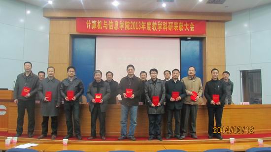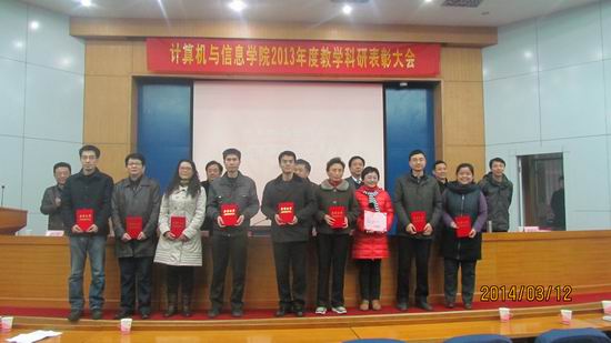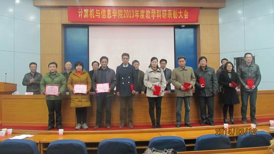 2013年度教学科研表彰大会对2013年度学生评教中排序前二十名的个人授予了“2013年度学生评教个人优秀奖”;对2013年度科研项目纵向到账经费50万以上、横向到账经费100万以上的个人授予了“2013年度承担科研项目个人优秀奖”。学院领导班子及学院教职工向受到表彰的各位位教师表示祝贺。