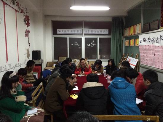 2月17日晚,开云kaiyun官方网站2013级学生寒假返校思想动态座谈会在翡翠湖校区举行,2013级各班班级代表出席座谈会。会议由2013级辅导员石楠老师主持。
