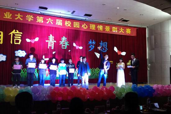 本次比赛以“自信•青春•梦想”为主题,共有来自全校的18个单位报名参赛。经过前期培训、初赛选拔,进入决赛的8支代表队通过精彩的表演呈现出大学生心理冲突,内容广泛、问题深刻,一个个故事或催人泪下,或促人奋进,或发人深省。台上演员与场下观众互动频繁而热烈,现场一次次掀起高潮。
